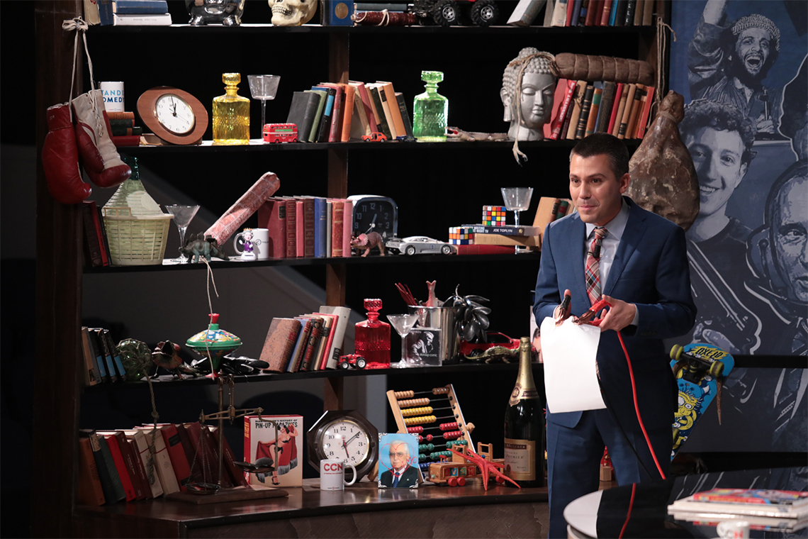 La scenografia aveva pianta simmetrica e circolare, riprendendo il logo di Comedy Central con due C concentriche, erano stati composti la scrivania a forma di C in vetro nero riflettente, la pedana con piattaforma circolare retroilluminata, la seconda C era formata da una grande panca in legno che poi sosteneva la struttura in ferro retrostante.