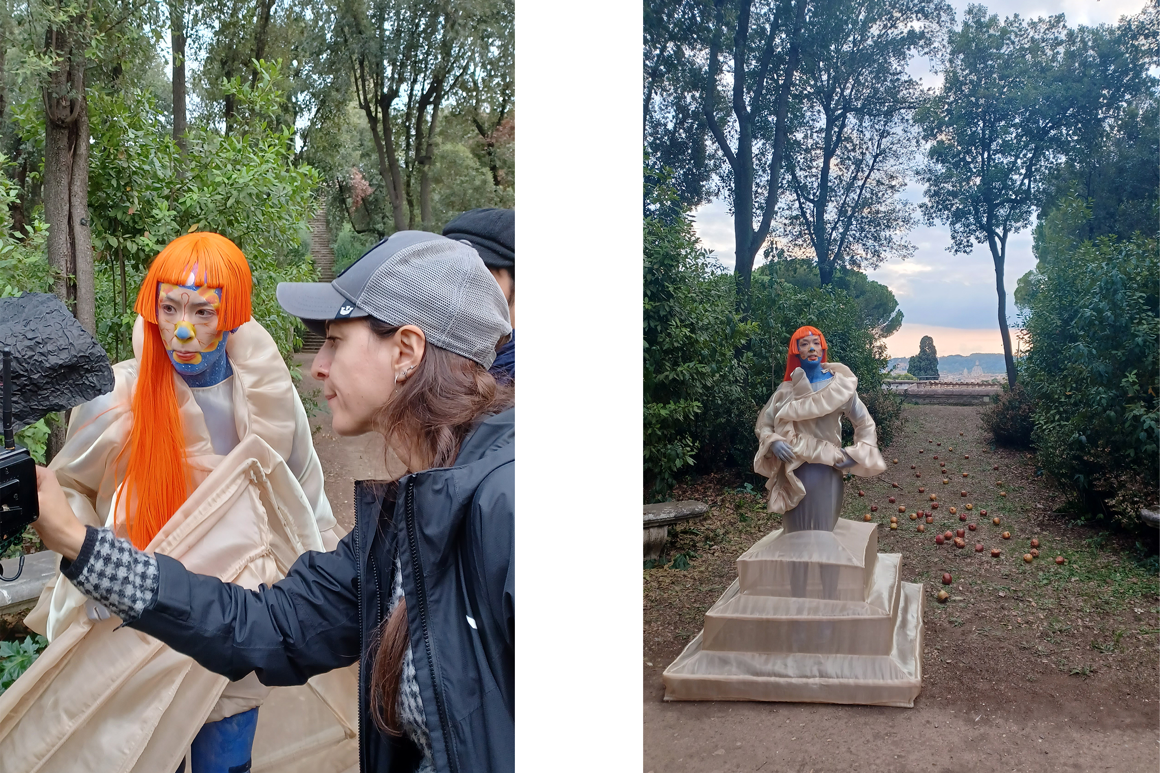 “Dreaming the end” cortometraggio interamente girato a Roma tra Palazzo Ruspoli, Villa Medici e il Colosseo Quadrato, è stato proiettato per la prima volta a Fondazione Memmo il 4 maggio del 2023, durante la prima mostra personale di Sin Wai Kin (Toronto, Canada, 1991) in Italia.
