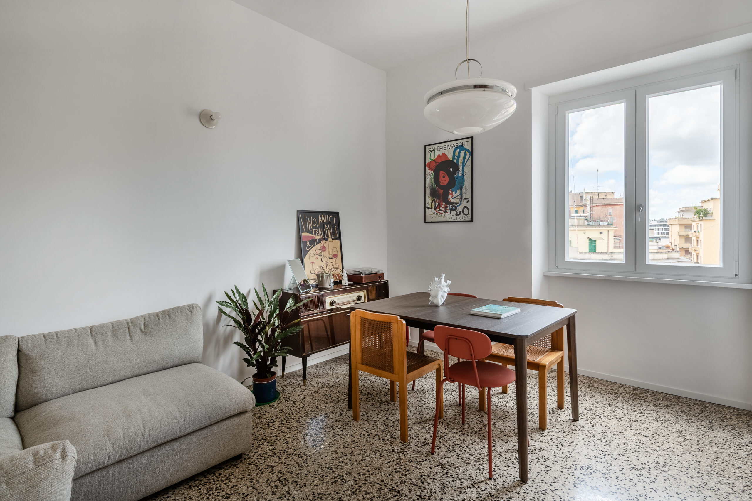 Situato in via Ostiense, a pochi passi dalla Piramide Cestia, questo appartamento di 62 mq è il risultato di un attento intervento di ristrutturazione che coniuga eleganza contemporanea e rispetto per l’identità originaria dello spazio. La disposizione fluida degli ambienti e l’attenta valorizzazione della luce naturale restituiscono un’abitazione funzionale, luminosa e accogliente. Le finestre incorniciano uno skyline urbano dominato dal suggestivo profilo del Gazometro, simbolo architettonico del quartiere.